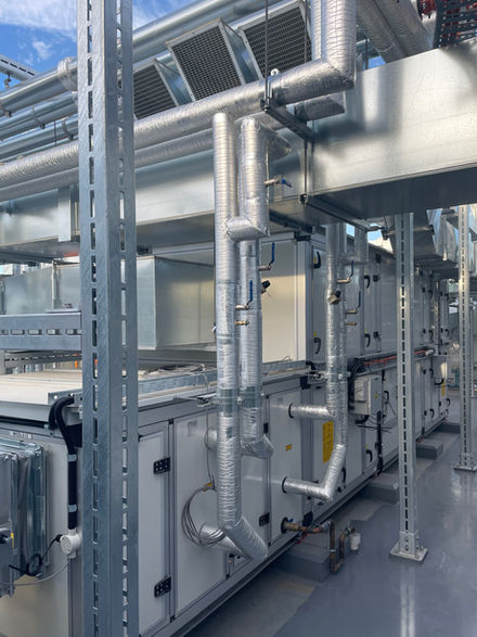 To support the successful delivery of this complex healthcare project, we utilised our in-house design capabilities and prefabrication facilities to implement efficient, high-quality solutions. This included the offsite manufacture of ductwork risers, pump skids, and modular pipework, helping to streamline installation, improve coordination, and maintain a high standard of workmanship throughout the build.